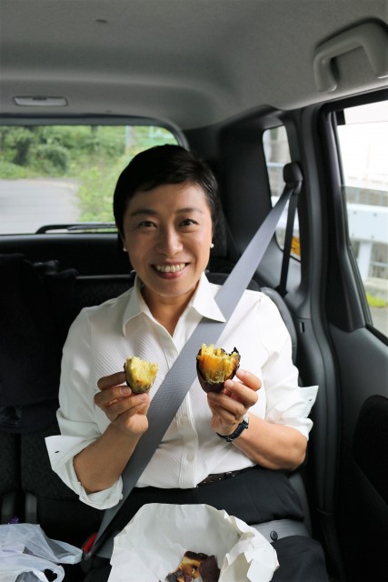 移動中のおやつに緑化フェアで買った石焼きイモを